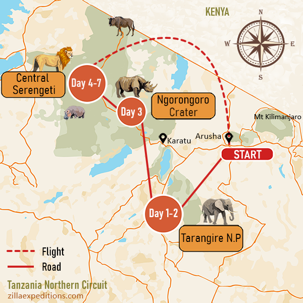 Destination – Arusha → Tarangire → Ngorongoro → Serengeti